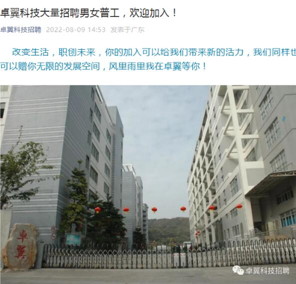 卓翼科技大量招聘男女普工,消费电子市场开始回暖?