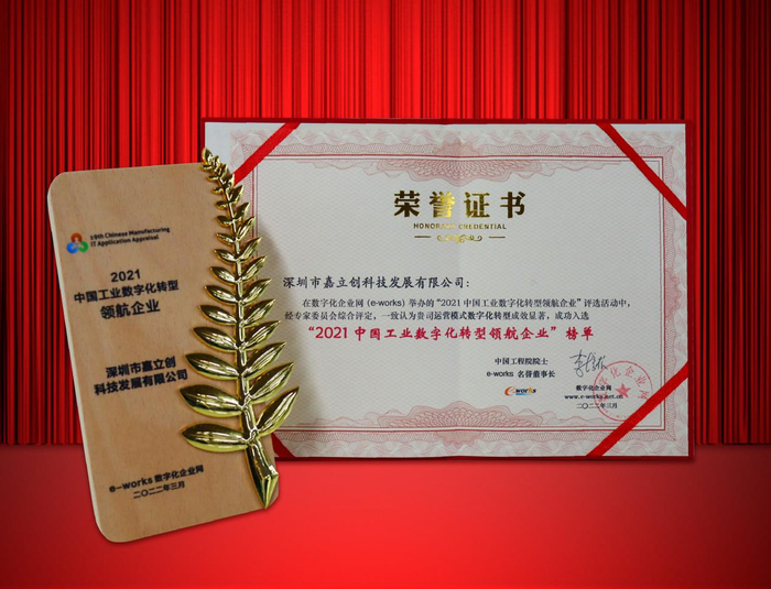 嘉立创以在“运营模式转型”的成功探索,与美的集团、小米集团、三一集团、上汽集团等知名企业一同入选“2021中国工业数字化转型领航企业50强”。