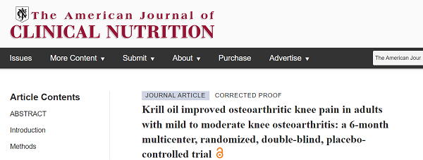 这项研究发表在《美国临床营养学杂志》,标题“磷虾油改善轻度至中度膝关节骨性关节炎患者的骨关节炎膝关节疼痛: 一项为期 6 个月的多中心,随机双盲安慰剂对照试验” ,由Welma Stonehouse,Bianca Benassi-Evans,Jana Bednarz,Andrew Vincent,Stephen Hall和Catherine L. Hill撰写。