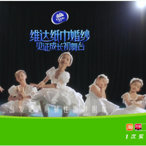 片中,爸爸的台词打动了无数人——”一张纸巾,只要内里足够韧性,也能成为一件婚纱。“ 就像看似普通的纸巾也能成为突破想象的纸巾婚纱,面对挑战,只要足够韧性,也能通往梦想的舞台。成长中难免会有挑战,维达通过纸巾婚纱传递坚韧的力量,鼓励国民家庭在韧性面对挑战中不断成长。视频中,维达还邀请了少儿芭蕾舞团一起,穿上纸巾婚纱,共同见证为梦想韧性起舞的成长初舞台。