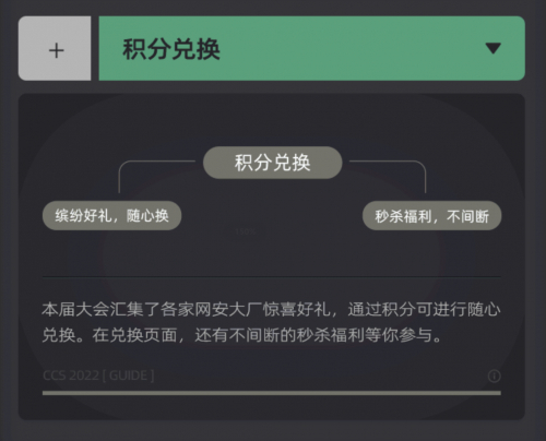 积分兑换:本届大会汇集了各家网安大厂惊喜好礼,通过积分可进行随心兑换。在兑换页面,还有不间断的秒杀福利等你参与。