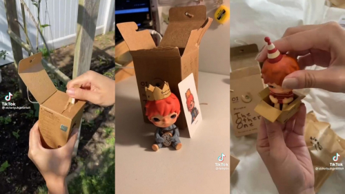 在泡泡玛特海外官方社媒平台,小野相关的内容也收获了上万粉丝的关注和点赞。在tiktok上,大量粉丝自发分享HIRONO小野的拆盒视频,称赞产品的设计、工艺、手感。