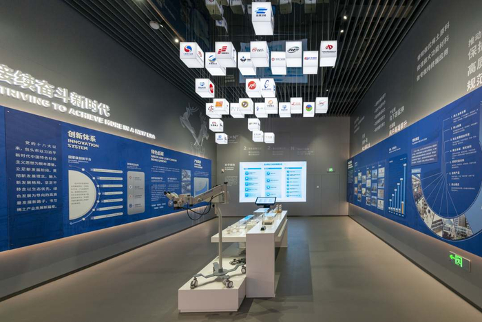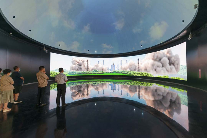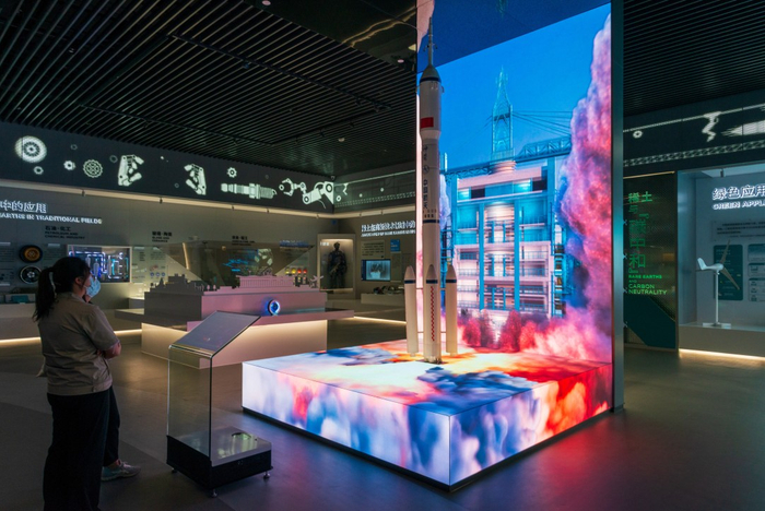 从汽灯纱罩、打火石到新能源汽车、航天科技,稀土在传统、战略新兴、绿色低碳领域里都有不少成功的应用。来到稀土与应用区域,LED直角拼接屏真实地还原火箭升空场景,完美地诠释了稀土与稀土产业助力中国航天事业发展的重要作用。