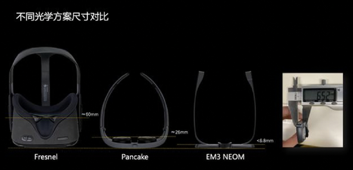 Pancake光学方案是一种超短焦的光学方案,也是近来VR领域中非常火的一项技术。与传统的“菲涅尔透镜”方案相比,Pancake光学方案可以让VR一体机的主机厚度减少二分之一左右,并在缩短了主机厚度的同时,改善了菲尼尔透镜中画面边缘畸变的问题,让主机的显示画面更清晰与自然。