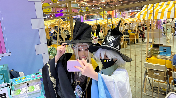 在充满Z世代的场子里,为了满足年轻人的喜好,在KK WORLD“魔法能量场”展区,爱戴IDAI还专门打造了“寻找黑色魔法师”主题展位。黑色魔法师COSER的空降,超高人气引爆现场互动。