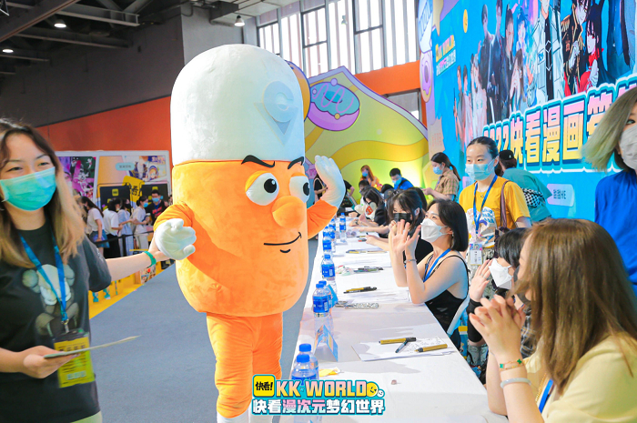 在KK WORLD核心展区,新康泰克精心搭建了以“共赴热爱,盛夏当燃”为主题的活动展台,“康泰克先生”不仅连续三天在现场与众多年轻人进行热烈、愉快的玩耍,还与《无法与女生成为朋友》的作者、《黑夜有所斯》作者及漫画女主魔女Coser等进行现场签售会互动,疯狂输出的爆梗引得粉丝爆笑不停,不断将气氛推向高潮。