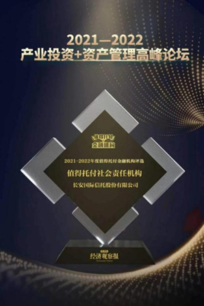 近日,由《经济观察报》发起并主办的“2021-2022年度值得托付金融机构盛典”公布奖项名单。本次盛典以“共融·共生”为主题,由专业评审及调研从多个维度发掘和展示中国金融领域的优秀机构和品牌。其中,长安国际信托股份有限公司荣膺“值得托付社会责任机构”。长安国际信托在经营主业、创业项目、慈善公益等多个维度的坚守与付出,得到了业内和社会各界的肯定与赞誉。