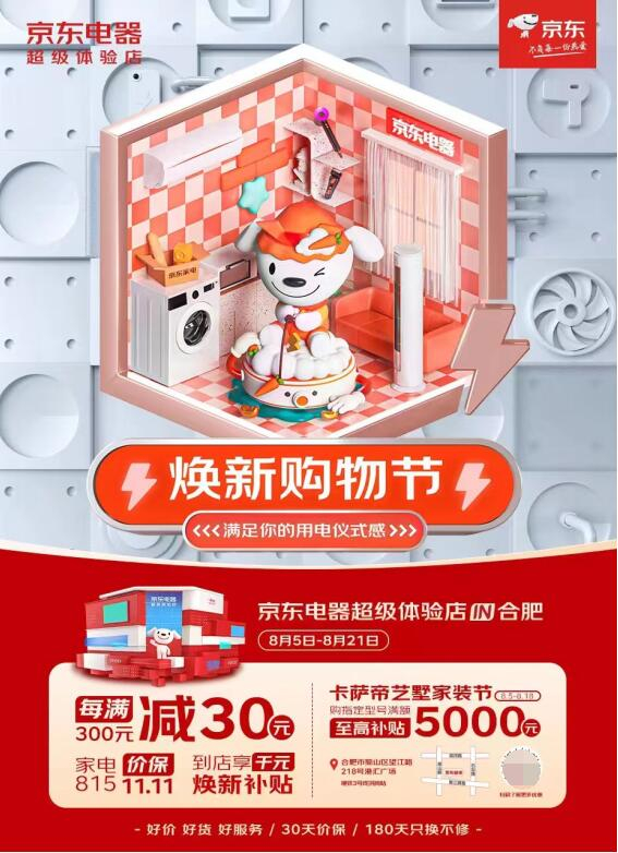 炎炎夏日,京东电器火热开启“8月来电好物季”,即日起至8月20日,跨品类以旧换新至低0元换、180天只换不修、新品至高24期免息等促销优惠活动不间断。京东电器更依托全渠道布局, 在西安京东MALL、京东电器超级体验店合肥店(以下简称合肥超体)、京东电器超级体验店重庆店(以下简称重庆超体)、以及遍布全国的超50家京东电器城市旗舰店,同步推出到店专享优惠好物,及新潮有趣的互动活动,为消费者打造线下潮电焕新的“用电仪式感”。更值得一提的是,开业在即的沈阳京东MALL、石家庄京东MALL也以独特的方式,为当地消费者带来生活新意。