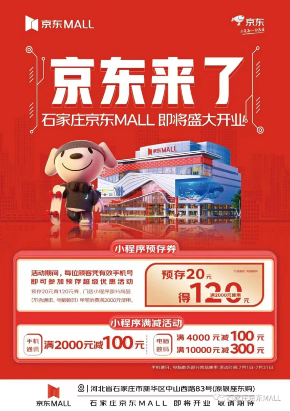 同样即将开启试营业的石家庄京东MALL,在活动期间也推出小程序满减活动,及预存超级优惠活动,期待值拉满!
