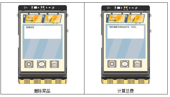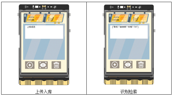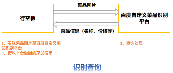 具体功能和操作可分下列几步进行。首先第一步,将USB摄像头和USB小喇叭通过USB扩展坞一起连接到行空板上,并通过外接Micro USB线给扩展坞额外供电。之后第二步,给行空板配置网络。第三步,编写并运行程序。第四步,待行空板屏幕上显示背景图和初始信息后,点击屏幕上的上传图标,将摄像头对准菜品,按下行空板a键拍摄菜品图片,随后在Mind+软件终端依据提示先后输入菜品名称和价格,等待自动上传菜品信息至百度图像识别平台中的自定义菜品识别库,接收平台返回的信息自动记录到文本文档中,完成上传入库操作。第五步,按下屏幕上的识别检索图标,同样通过摄像头拍摄要识别的菜品图片,等待自动返回菜品信息,显示在屏幕上以及自动语音播报。可重复上述操作,识别多个菜品,并按下行空板板载按键b进行计算总费。最后第六步,按下屏幕上的删除图标,从文本文档中查找要删除的图片的编号,输入在Mind+软件终端,确定后等待自动上传该信息至百度平台,完成删除操作。