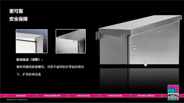 防爆箱:国内国际双认证,防爆认证齐全:IECEx/ ATEx/ CCC/ NEPSI。用多锁具保证IP66高防护,且标有锁紧标识,便利后续维护操作。标配门加强筋,不但可以增加门的强度,还可以扩装附件,充分利用门上空间。而作为附件选配防雨顶棚和侧安装板,给客户带来更多防护和安装空间。