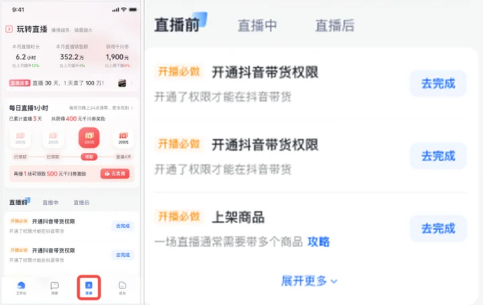 开启直播:布置直播间、创建话术脚本、了解更多直播工具;