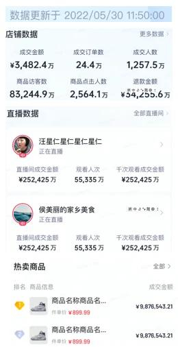 2.实时获取数据简报,店铺成交、直播、商品情况一目了然