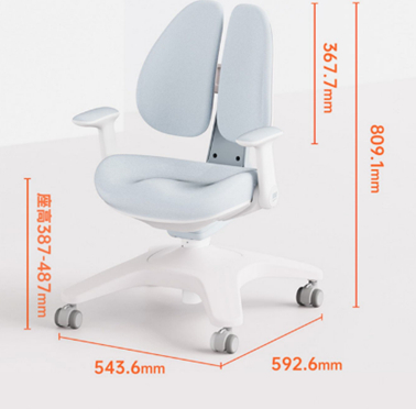 作业帮追背正姿椅深度可以调210-329mm,座深范围,高度可调387-487mm,通过多维度坐深匹配学生骨骼发育,陪伴学生健康成长。座椅坐垫采用三防针织提花面料和独立椅套,高透气网背设计,舒适透气不闷背,无毒环保妈妈放心省心。