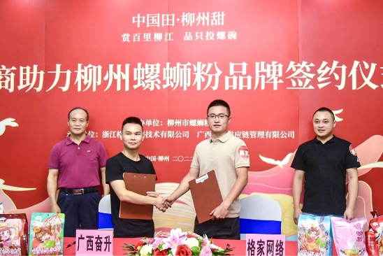 8月9日,由柳州市螺蛳粉协会主办,格家网络和奋升供应链联合承办的“中国田·柳州甜”暨“赏百里柳江 品只投螺碗”,电商助力柳州本土品牌战略签约仪式在柳州举行,奋升供应链联合创始人陈观源和格家网络中国田负责人周一波签订合作协议。