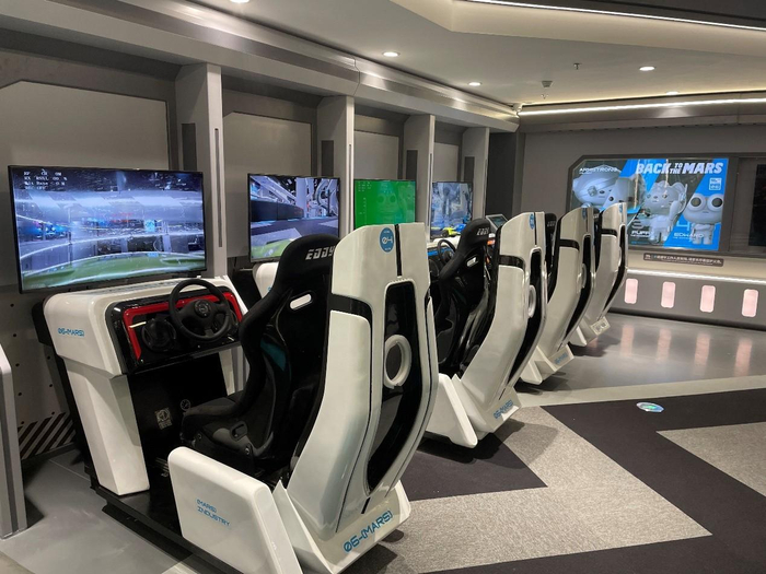 最适合8岁以上的儿童玩的区域应该是AR运动区,运动项目融合科技元素,让孩子瞬间觉得游玩体验上升了一个档次,非常吸引人。还有隐藏关卡“虫洞空间”,这个是利用AR科技,父母和孩子可以同时参与其中,对亲子关系的升温很有帮助。