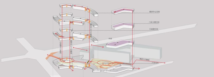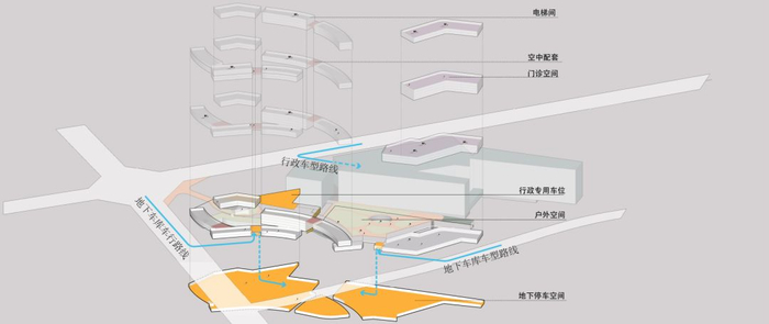 在医康养设施建筑的设计过程中,流线是影响空间布局的主要因素之一,须在设计初期进行综合考虑。一旦流线设计错误,很可能造成建筑的“硬伤”,不易修改,会长期影响整个设施的运营效率。本次设计注意提高效率,避免病人往返迂回,在最短时间、最短距离中完成诊疗,并最大限度地防止交叉感染的发生,为病人创造良好的物理环境。