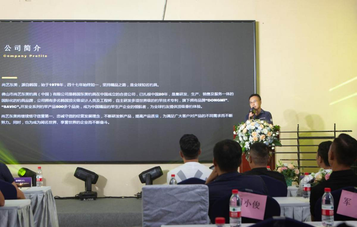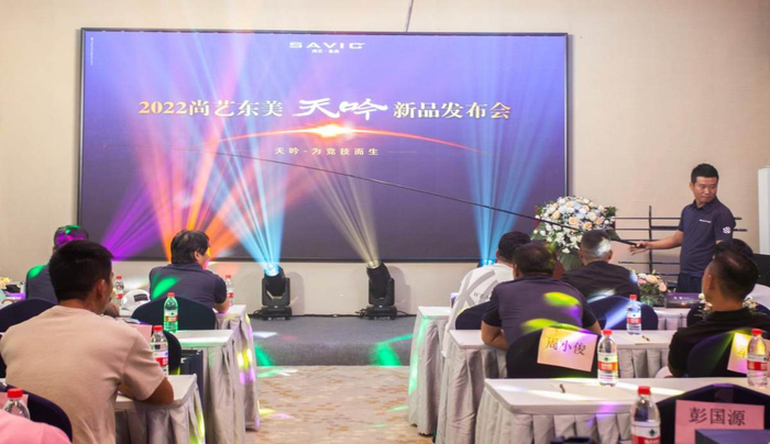 发布会上,佛山市尚艺东美钓具有限公司总裁龙卓飞先生首先对尚艺东美品牌发展史进行回顾,并向大家介绍新品“天吟”的特性。伴随着乐曲旋律,“天吟”钓具呈上舞台,令在座嘉宾惊艳不已。