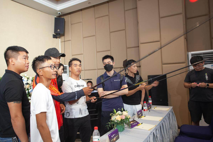 会上,中国二级竞钓大师郭代龙、中国三级竞钓大师、广东省第一届钓王孙慎、广东一级竞钓大师陈维明、广东一级竞钓大师杨萍等分别就“天吟”钓具的新品使用感进行分享和交流。“天吟”使用T1100G碳布和M40J.M46J碳纤维,45°交叉加90°,双重加固,做到既轻细,又灵敏强韧。钓手们纷纷表示,为竞技而生的“天吟”给他们带来足够的自信感和安全感。
