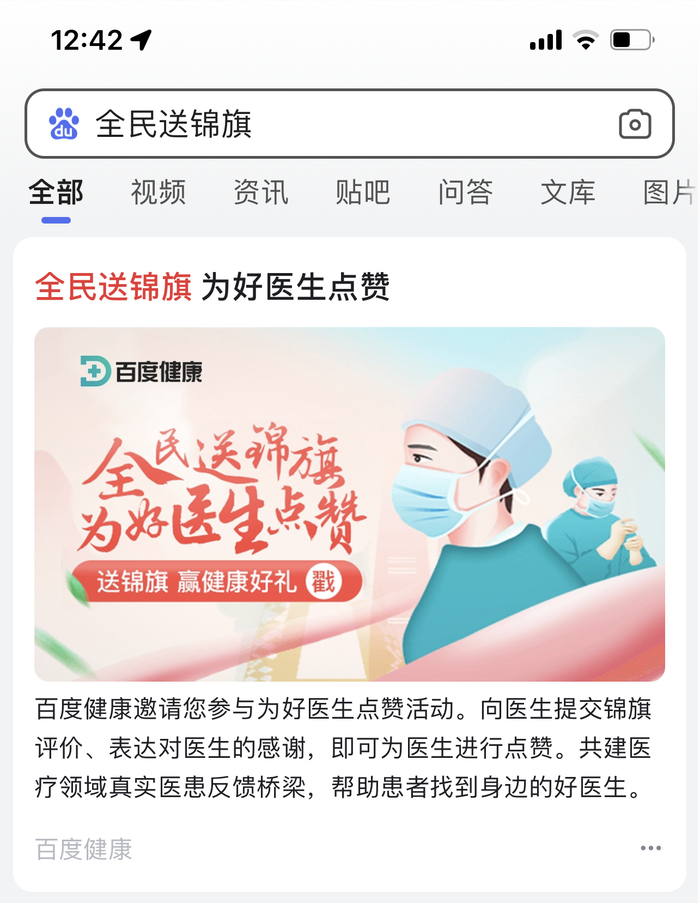 百度健康上线“送锦旗”服务,加强医患连接与信任