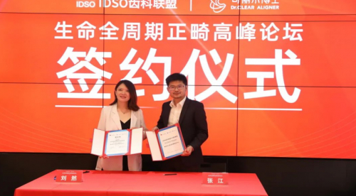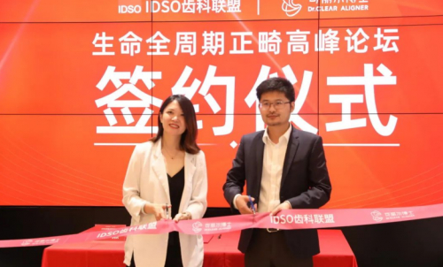 8月12日,由IDSO齿科联盟及可丽尔博士联合主办的生命全周期正畸高峰论坛暨双方战略合作仪式在北京国贸圆满落幕。IDSO齿科联盟创始人兼欢乐口腔医疗集团副董事长孙延博士、IDSO齿科联盟副总裁刘然女士、可丽尔博士市场总监张江等人出席签约仪式。