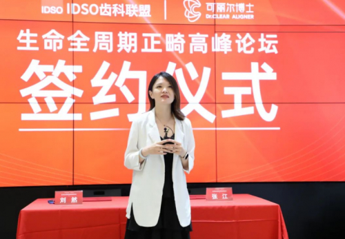 IDSO齿科联盟副总裁刘然及可丽尔博士大区总监张江分别进行致辞。刘然女士在致辞中表示,目前国人对错合畸形的预防意识不足,所以才会导致我国青少年错合畸形发病率极高,而正畸作为纠正错合畸形的有效医疗途径和手段,被越来越多人所选择。