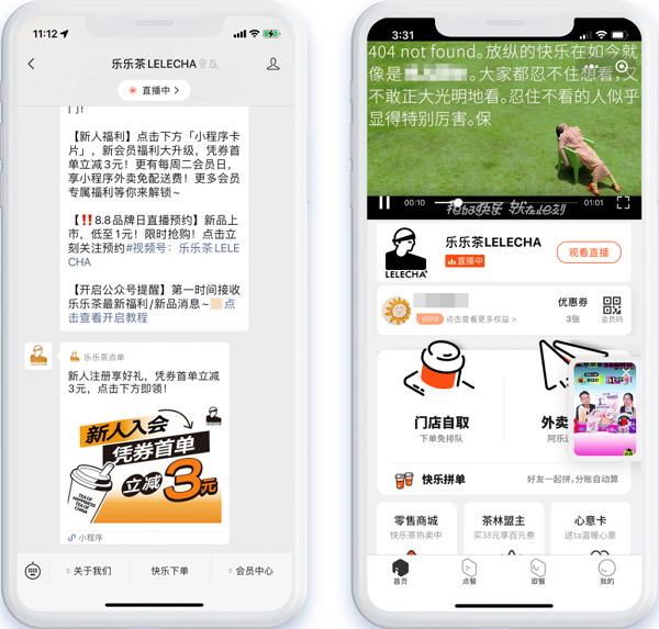 ▲「乐乐茶」公众号、微信社群发布直播预热