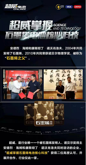 找准方向是品牌建设的关键所在。2004年,英国曼彻斯特大学物理学家康斯坦丁·诺沃肖洛夫和安德烈·盖姆,利用微机械剥离法成功从石墨中分离取得了石墨烯。作为一款具有优异光学、电学、力学特性的新型纳米材料,石墨烯被科学家誉为足以改变世界的“材料之王”。怀揣初心使命的超威,凭借丰富的经验和灵敏的市场嗅觉,敏锐地捕捉到了其中所蕴藏的巨大科技价值,将目光迅速投入到了石墨烯电池领域。