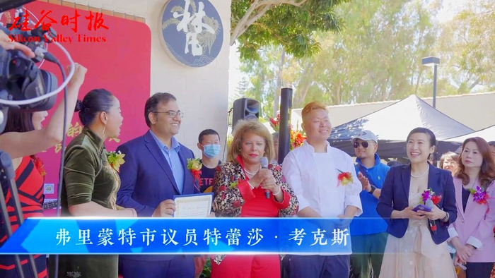 弗里蒙特市议员特蕾莎·考克斯在致词中表示:衷心祝贺“梵”餐厅的开业盛典, 弗里蒙特市是一个多元的社区,该餐厅的菜品融入了中西方文化元素,为居民们提供了丰富的菜品,多样的选择。各国的餐饮都独具特色,但是中餐一直是更受欢迎的一种选择,包括我和我的家人都喜欢吃中餐。同时,美食文化也为我们不同族裔的人相互交流,了解彼此搭建了桥梁,希望这个多元化饮食餐厅可以为大家带来美食上的享受,文化上的传递,同时也希望“梵”餐厅的未来发展可以更上一层楼。