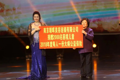 世界知名励志演讲大师尼克·胡哲在南京青奥体育馆举办“人生不设限”万人主题演讲时,朝晖美容作为此次演讲会的协办单位,向南京困境儿童和残障人士捐赠了100张演讲会门票,同时在当天的慈善拍卖会上捐出价值10万元的珠宝,所得善款全部捐助给南京益童基金会用于未成年人保护的公益项目。