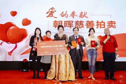 朝晖VIP2019年度答谢盛典中,号召现场300位VIP共同参与慈善公益 ,朝晖赞助世界名牌饰品和珠宝进行现场拍卖,由南京电视台知名栏目《老吴韶韶》的主持人老吴主持拍卖环节,所得善款全部捐赠给南京益童基金会用于帮助困难儿童。