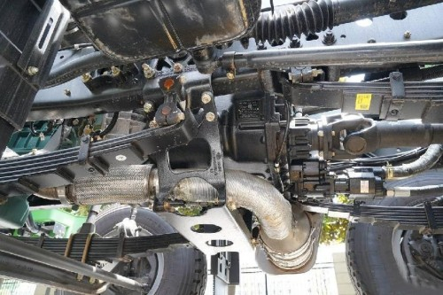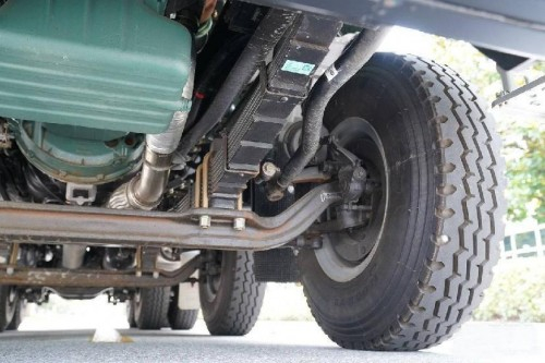 对于自卸车来说,举升时的安全性也十分重要,为了使其稳定性更好、安全性更高,实拍车型针对举升进行乐很多优化设计,如车架加宽、板簧距加宽、前轮轮距加宽等,无论是行驶安全性还是举升稳定性,都提升很多。