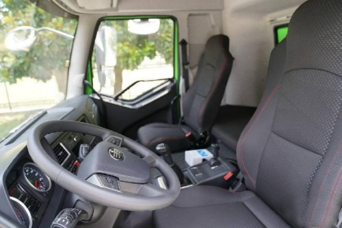 不仅如此,考虑到自卸车要经常实行在城市道路上,在车多人多的情况下,视野观察就变得很重要。那么这款自卸车先是降低仪表台的整体高度,这样车内前下的视野范围得到拓宽,车前有人也比较容易看到。