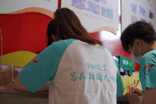 在活动的第三站,南通大学昌荣红色实践小队7月14日继续开展参观新四军重建军部旧址的活动。参观过程中,每位革命英雄的光荣事迹都深深激励着团队成员,一张张革命照片,一件件革命文物都追忆着当年新四军的浴血奋战的战争岁月。在撰写明信片环节中,团队成员更是把情感倾注在笔尖,活动的开展让团队成员进一步了解和体会到铁军精神的时代意义。