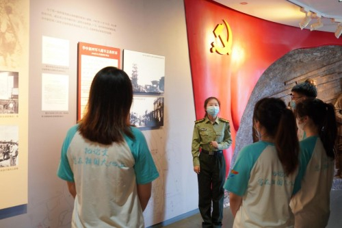在活动的第二站,南通大学昌荣红色实践小队于7月13日前往江苏省盐城市新四军馆,通过实地考察深刻领悟铁军精神的内涵。团队成员依次参观了新四军资料馆、音像馆、书画馆和新四军人物馆,并且观看了原革命先烈的英勇事迹的采访视频,进一步体会到了老一辈战士浴血奋战的大无畏精神。通过此次的参观,实践团队增进了对新四军革命斗争史实和“铁军精神”的了解,增强了民族自尊心和自豪感。我们即使生活在和平富足的年代,也必将传承好战士们穷尽一生传递到我们手中的“交接棒”。