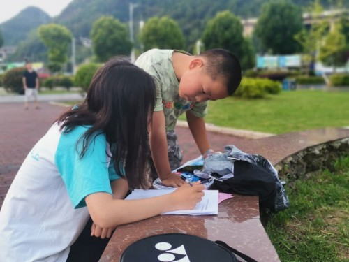 为了进一步传承和弘扬昌荣精神,团队成员向当地的居民展示了团队亲自设计的红色昌荣文创产品,红色文创产品是传统红色文化和现代创新实践的融合,团队成员希望通过这种新颖的形式,号召人们去进一步了解、体会昌荣红色革命精神。宣讲活动结束之后,团队成员向广大社区群众发放“关于探索地域红色文化推动乡村振兴创新融合发展”的调查问卷。面对有识字障碍的群众时,团队人员耐心为他们进行问卷内容的解读,指导他们完成调研题目。
