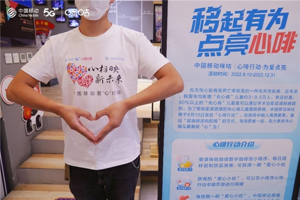 为帮助更多困境家庭先天性心脏病患儿解除病痛重获“心”生,中国移动慈善基金会联合咪咕咖啡,共同开展中国移动爱“心”行动——困境先心病儿童救助计划“心啡”专题公益配捐活动。