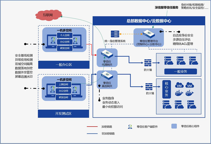 传统安全建设采用分区分域+纵深防御的方式解决跨网访问问题,但随着业务和人员规模的不断变化,分区分域面临严峻挑战:用户活动,范围广泛;人员众多,职责切换;入职离职,权限复杂;ACL腐化混乱;一机多网,隔离艰难。