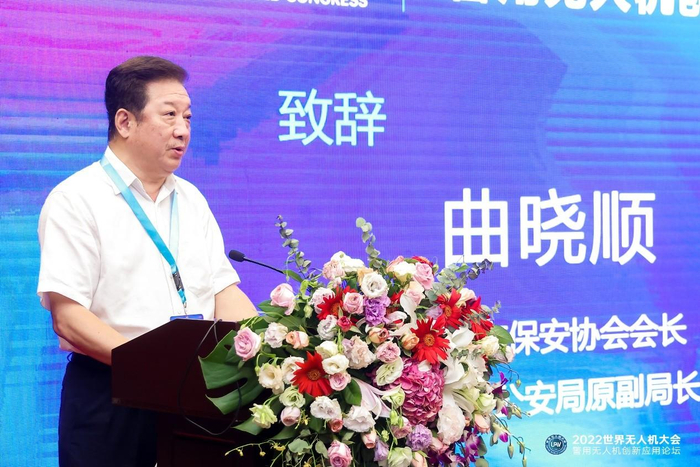 深圳市保安协会会长、深圳市公安局原副局长曲晓顺出席了论坛并致辞,他指出,深圳是无人机之都,拥有完整的产业链和雄厚的生产研发实力,经过多年的探索与实践,深圳已经实现了警用无人机常态化应用,在执法执勤、治安巡逻、社区防范、反恐监控、维稳处突、应急消防、疫情防控、海防打私、交通管理、森林巡控、信息采集等方面得到广泛应用,成为公安机关不可替代的科技手段。