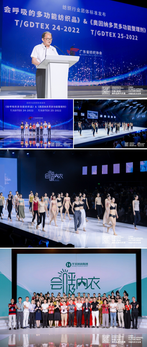 在现场各来宾见证之下,广东省纺织协会陈统宣执行会长重磅发布《会呼吸的多功能纺织品》、《奥因纳多灵多功能整理剂》两大行业团体标准,这也昭示着未来的华美时尚集团,将在产品生态发展、绿色健康等方面,积极寻找新的突破点与增长点。