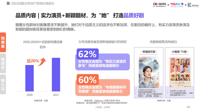 她剧集、她综艺、她人文,视频平台如何利用优质内容留住女性用户?| CBNData报告