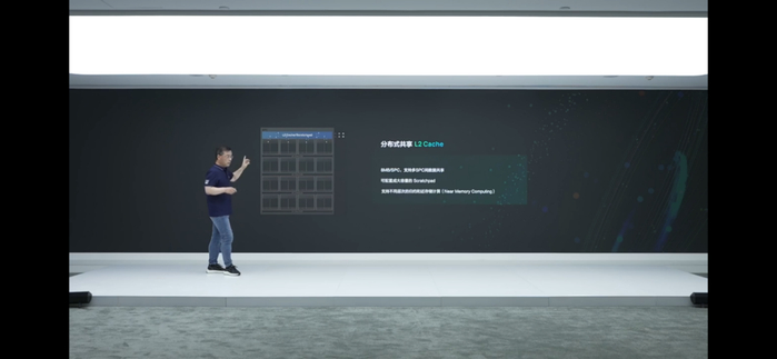 分布式共享L2cache也是洪洲特别提到的创新点。“传统GPU的L2cache一般在芯片中间,或者芯片边上,在memorycontroller旁边。我们的设计是分布式缓存,和每个大的计算核在一起,也能够共享,通过片上网将其连在一起。”“这样的好处是,让数据和计算单元挨得很近,与此同时又在芯片level做共享。”