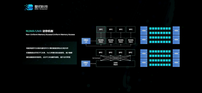 而NME近存计算引擎应当和前面提到的分布式L2cache也有关,“让计算发生在数据呆着的地方。数据走到哪儿,计算就应该在哪儿发生。”这里的“reductionengine”大约是关窍所在。NUMA/UMA访存机制也是考量不同数据特性,减少数据通讯的距离和次数。