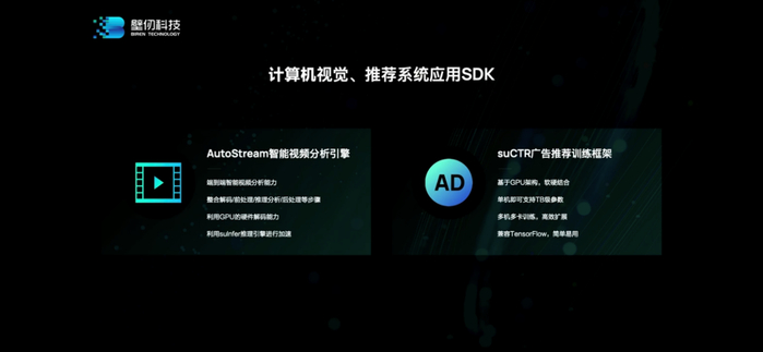 上层的解决方案,现阶段主要有两个:AutoStream和suCTR。壁仞科技联席CEO李新荣介绍说,AutoStream智能视频分析引擎是基于GStreamer框架开发的软件库,用于端到端的智能分析。“它可以对图像以及视频的数据做前端和后端的处理,充分利用壁仞GPU的解码能力和推理加速能力,高效地支持视频分析应用。”未来还会有更多AutoStream的功能问世。