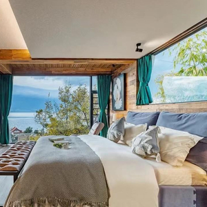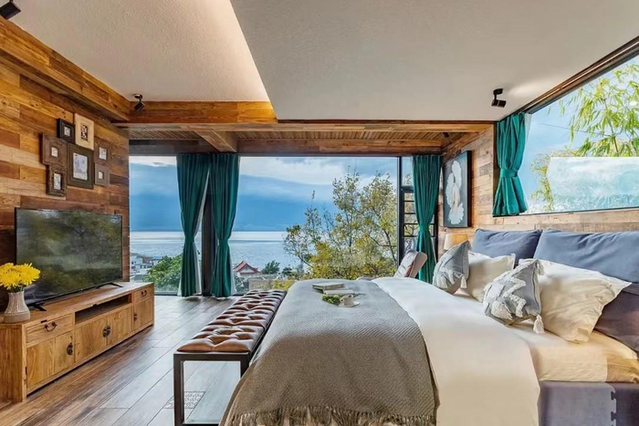房间设备俱全,民宿还提供采自当地山里的纯天然花草饮品,让客人在沉浸山水木屋的同时享受更多的体验。在房间里可以看到屋前的泸沽湖,同时也是看日落和远山云彩的绝佳位置。
