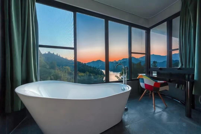 房间的面积很大,拥有相当壮观的湖景,而且临湖的窗边都带有浴缸。黄龙山房周边有秘道瀑布、蜂场及联群村村落可以游览,也可在黄龙带水库划皮划艇、桨板,玩玩水。