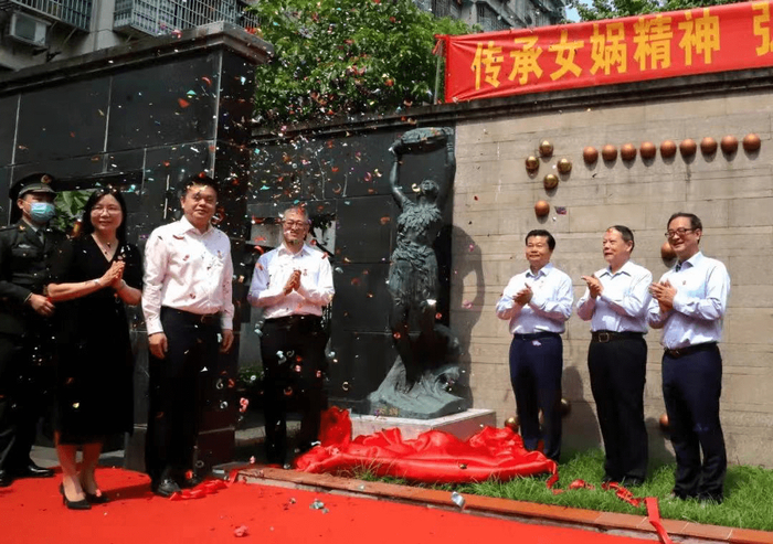 参加仪式的领导嘉宾共同为女娲塑像揭幕