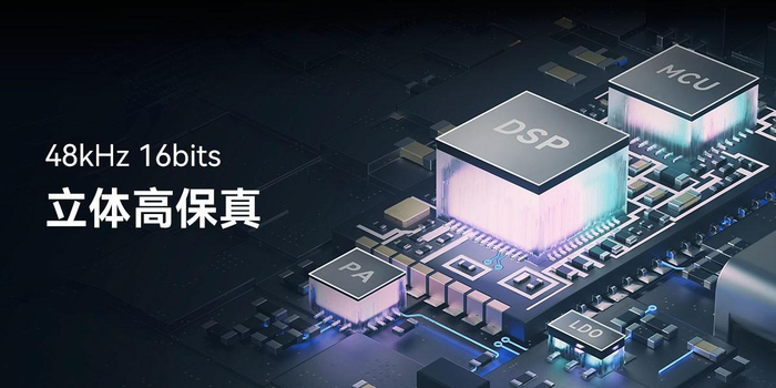 内置性能领先的ARM Cortex-M4F微控制单元(MCU)、数字信号处理(DSP)、射频功率放大器(PA)和线性稳压器(LDO)等芯片,为声音数字信号传输提供强大算力支持,带来持续稳定的48kHz 16bits高保真无压缩音质。