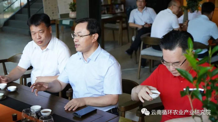 (图)刘仲华院士一行在柏联普洱茶庄园座谈交流。