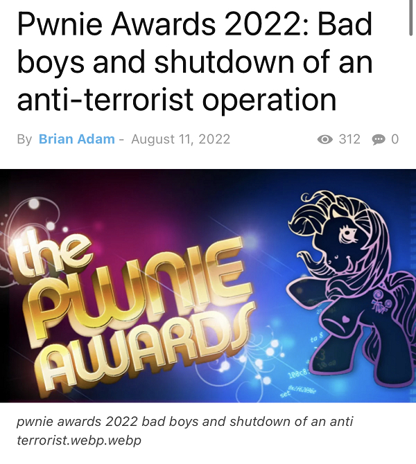 而在今年七月刚刚公布各奖项提名的2022年度 “全球黑客奥斯卡” Pwnie Awards(“小马杯大奖”),也终于在本周尘埃落定。8月11日,本年度的Pwnie Awards各奖项各归其主,昆仑实验室再次同时揽得两大奖,创造了中国安全研究人员在这一赛事上曾获得过的最佳成绩。